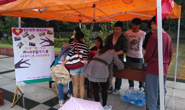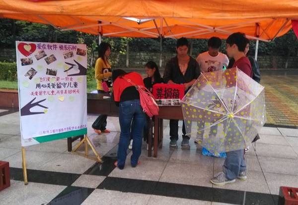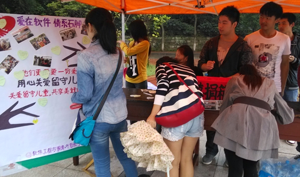 9月26日,由我系青年志愿者部带头,在学校星湖广场、一教楼、校外公寓进行了“爱在软件 情系石脚”的爱心募捐活动。