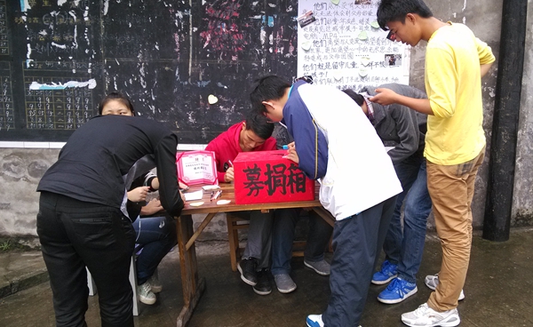 上午7点,天空中飘着蒙蒙细雨,我系的学子开始了他们的募捐活动。路过的师生纷纷过来观看本次募捐的展板宣传,并不时的询问帮扶对象的相关情况。各位爱心人士都伸出热情的双手,献出了自己的一份爱心,同时写下了心中最感人的祝愿。活动中,志愿者们一直保持灿烂的笑容,对前来募捐的爱心人士表示真诚的感谢。在活动的过程中感受到了助人为乐的幸福,给石脚小学的留守儿童送去一份温暖,一份关爱与快乐,让他们度过一个快乐的国庆节。