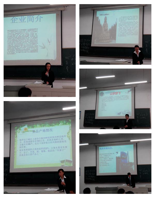 本次汇报会共有八名同学参加实践分享。他们通过ppt、视频等手段图文并茂的给大家展示了社会实践的成果,同时交流了实践经验,分享在实践过程中的所思所想。比如在中国移动公司外呼中心做客服工作的同学提到自身交际能力和心态得到了很好的锤炼;去百世汇通实习的同学体会最深刻的是了解了该行业的运作模式以及工作内容,为自己以后的定位做了很好的铺垫;此外,其他同学还跟大家分享了自己在安检员、客房服务、果园工作等岗位的经历。在这次社会实践中,虽然锻炼形式有所不同,但同学们根据自身的特长,通过不同渠道锻炼了自己的意志力和社会交际能力。