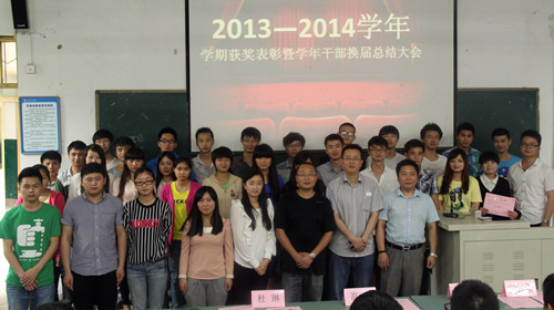 2014年6月4日13:00,我校软件工程与服务外包系举行2013-2014学年表彰暨学生干部换届总结大会,校长助理、教务处处长殷朝华教授、学生处副处长、校团委书记杜琳老师、校就业处副处长吴文老师、系主任高伟老师及全系师生参加了本次大会。