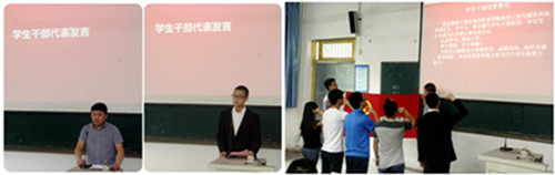 在学生干部总结与宣誓就职仪式中,第三届学生干部代表在团旗下光荣宣誓:认真学习,勤奋工作;善于观察,甘于奉献!
