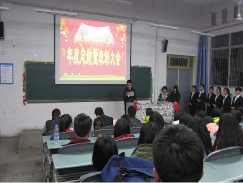 大会第一项,校团委书记杜琳为表彰大会致词,从杜书记的发言中我们感受到,我们的成果很喜人,从各种活动中总结出的经验很宝贵,我系在技能大赛与管理模式中成效显著。杜书记在祝贺之余并提出了几点建议与希望:1.志存高远,树立远大目标。2.学以致用,树立理性思维。3.精诚所至,树立合作意识。4.脚踏实地,树立实干意识。最后表达了对我系学生的祝福。