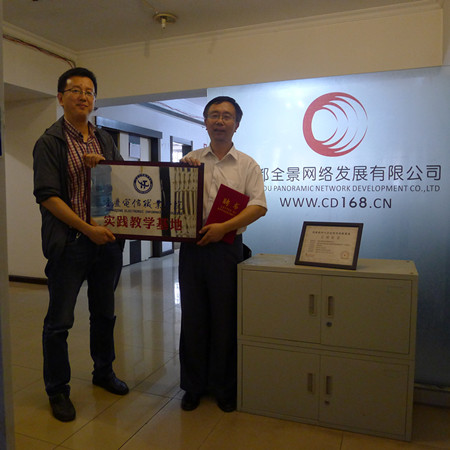 5月11日上午,我院与成都全景网络发展有限公司举行了授牌仪式,我院院长高伟出席仪式。我院聘请谢飞先生为客座教授,并颁发了聘书。