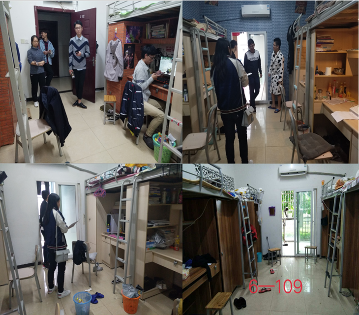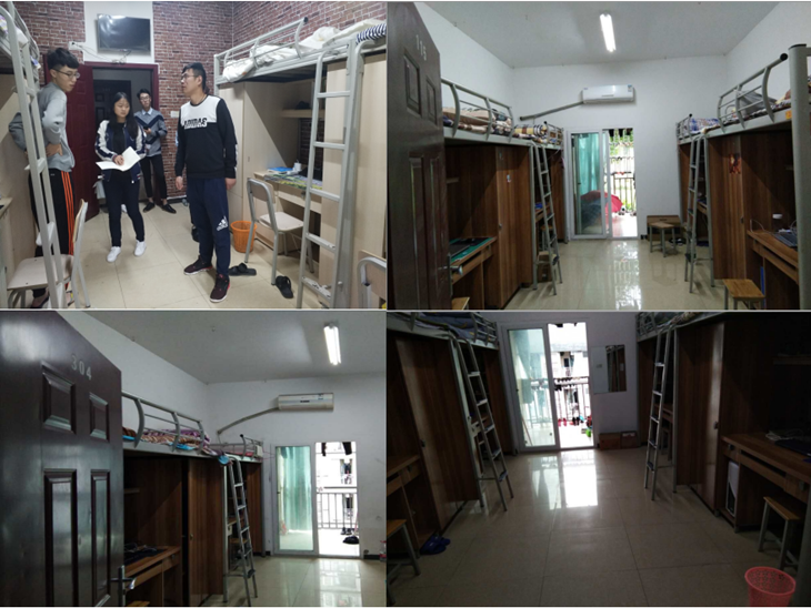 为加强学生寝室文化建设,营造一个温馨舒适的寝室学习生活环境,进一步提高同学们的安全意识,彻底清除安全隐患,近日,我院党支部书记廖良刚带领辅导员和学生干部在不同时段前往男女生寝室进行安全大排查大整治工作。