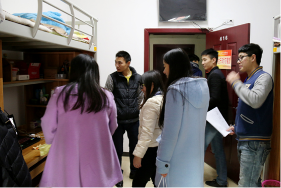 下午15:30,学院安全检查工作小组开始对我院所属的各个区域进行安全自查,在排查过程中小组所有成员对每个区域进行认真排查,做到不留死角,院长高伟在排查实训实验室中仔细翻阅记录本,并要求学院办公室跟实训室管理老师衔接,一定对实训实验需用耗材进行严格登记管理,定期督促做好各种设备的保养和维护。随后分小组对我院所有的师生寝室进行检查,检查过程中发现经过此次卫生大扫除后,大部分寝室:地面干净,物品摆放整洁,无异味,呈现一种良好的态势。当然也检查到有个别寝室有烟头空气较差,并且发现大功率电器。对此老师们在现场对有问题的寝室学生进行批评教育,并且责令其立刻整改,对发现的大功率电器立刻没收,要求学院学生干部们一定加大寝室日常的卫生和安全检查工作。