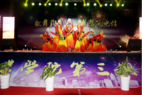 晚会现场,灯光照耀,靓丽的舞台,等待着精彩的节目登台出演。晚会共有16个节目上台演出,各有不同,别具风格。如梦如诗的意境,如画如歌的画面,舞动青春的色彩,歌唱生活的热爱,从一曲《夜来香》歌舞,调动了晚会的气氛;到《疯狂的艺术团》小品节目笑点不断,引得同学们开怀大笑;再到《大漠之花》充满了神秘的风情,朦胧的面纱看到它无穷的魅力;最后到美丽的女老师们的舞蹈节目《西班牙之火》,让我们领略古铜色的皮肤、爽朗的笑声,她们热情的舞蹈带领我们感受到了异国热情,也看到了她们讲台下不一样的一面。晚会中还精心准备的抽奖和颁奖环节,现场气氛更是高涨愉悦,让同学们的课余生活丰富精彩。