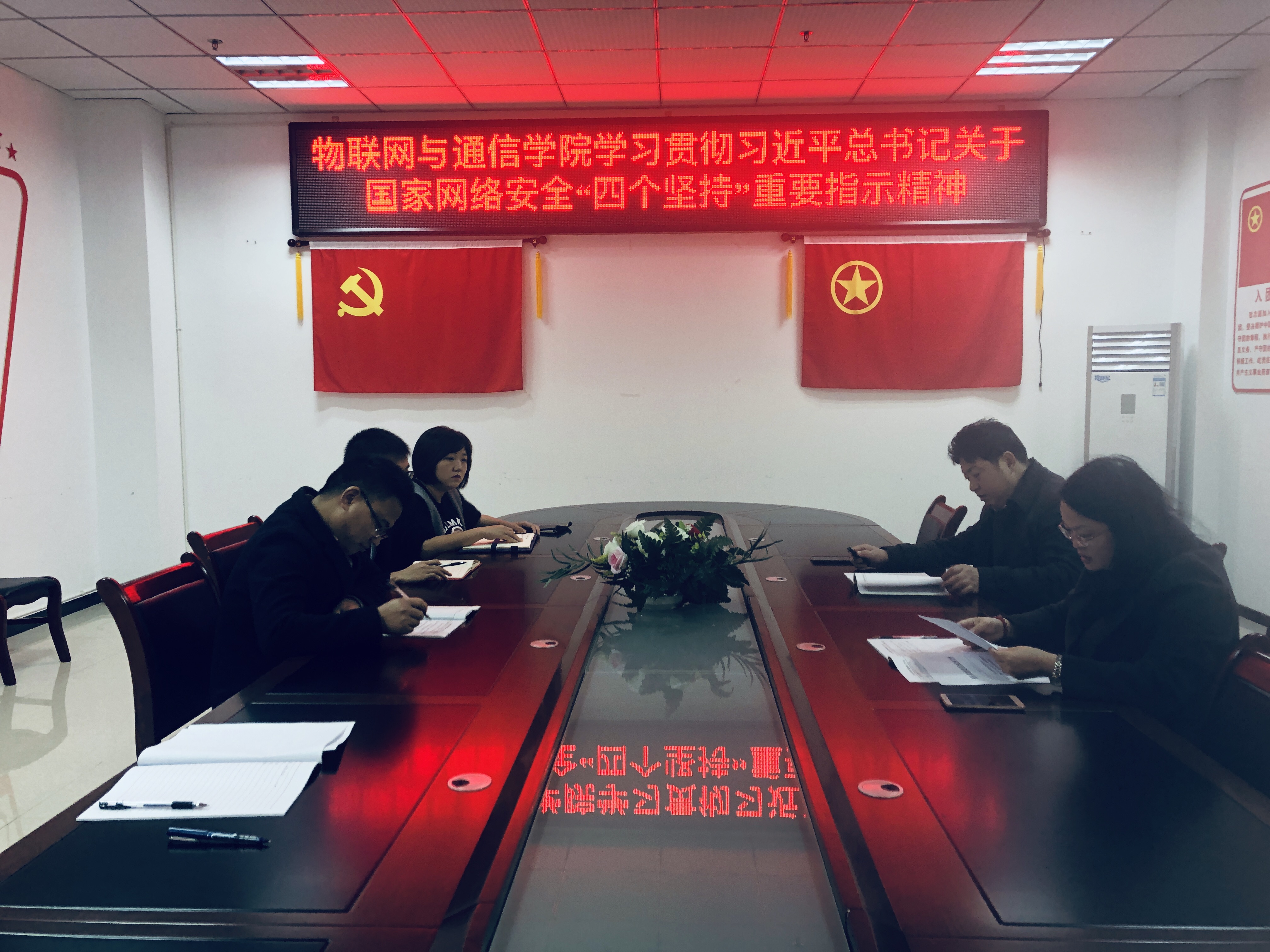 2019年11月5日上午10点半,我院集中学习了习近平总书记关于国家网络安全“四个坚持”重要指示精神,交流心得体会,统一学工工作思想、深化网络安全认识,研究贯彻落实举措。党支部书记侯周兰主持会议。